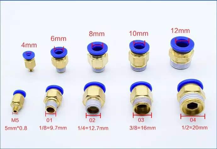 2. Xác định Đầu nối nhanh dùng cho ống khí phi mấy: Đối với loại đầu nối thông dụng này chỉ cần xác định đường kính ngoài của ống thường có in trên nút ấn của ống. ( 4,6,8,10 hoặc 12)