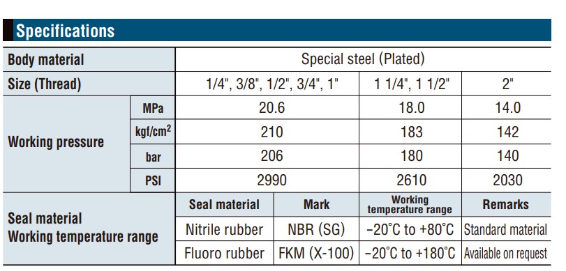 Đầu nối nhanh thủy lực HSP chuyên dùng dẫn dầu thủy lực. Được sản xuất từ vật liệu thép đặc biệt chịu áp lực lên tới 210kgf/cm2 (20Mpa). Có khả năng chịu nhiệt lên tới 180 độ.