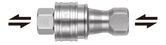 - Đầu đực (P-A) và đầu cái (S-A) đều có van 1 chiều giúp Khớp nối tự động đóng van khi ngắt kết nối. Chất dẫn có thể đi được cả 2 chiều